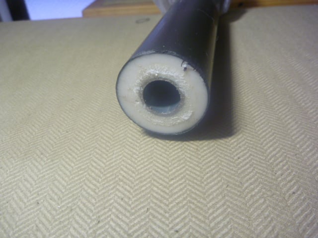 断面は中心に金属、その周囲と表面は半硬質樹脂で包まれています。